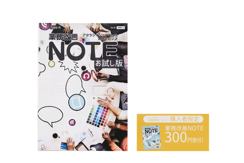 サイボウズ商店オンラインサイトで『kintone認定アソシエイト試験対策テキスト 第4版』をご購入のお客さま限定で、『アタラシイショクギョウ発見マガジン 業務改善NOTE』のお試し版と300円割引券をお付けいたします!